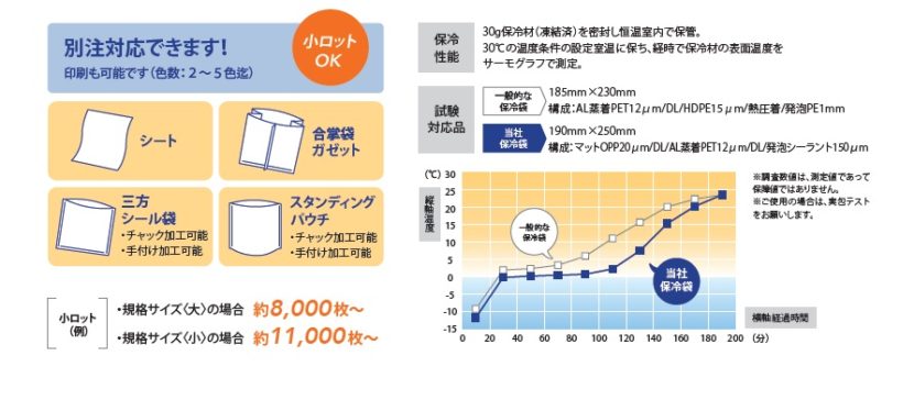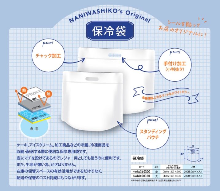 ケーキ、アイスクリーム、加工商品などの冷蔵、冷凍商品を収納・配送する際に便利な保冷専用袋です。