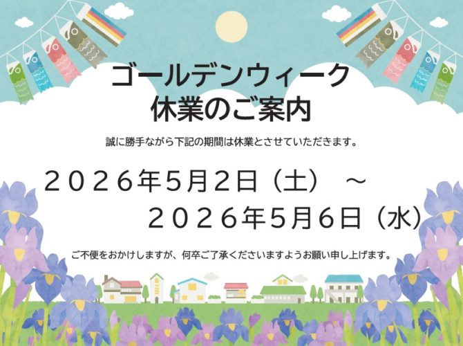 平素は格別のお引き立てを賜り厚く御礼申し上げます。 誠に勝手ながら本社・東京支店・各工場の休日を